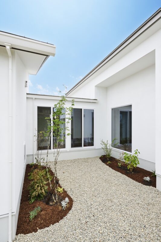 中庭や外構(フェンス、植栽)などを取り入れるなどの工夫で、採光・通風やプライバシーの問題を解決できます。